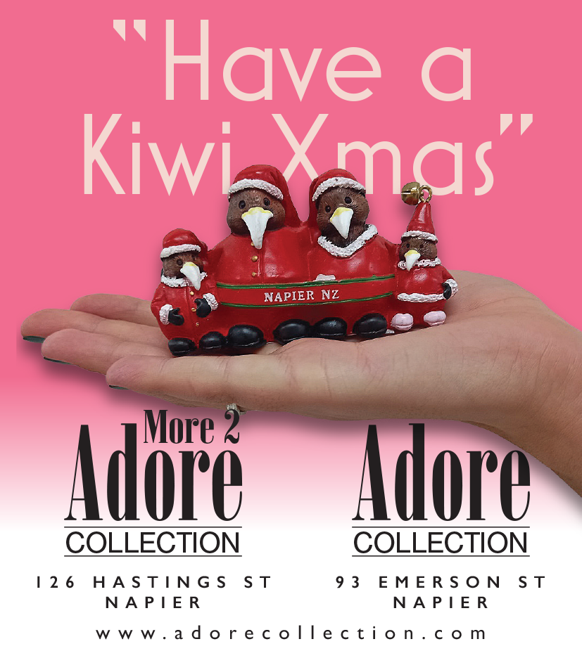 Hanging Christmas Pom Pom Kiwi with Napier New Zealand sign